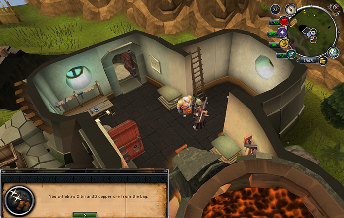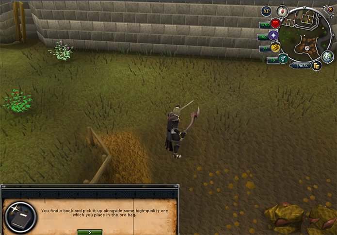 Při pokusu o těžbu rudy na vás zaútočí Living rock brawler, udělejte s ním krátký proces a ruda je vaše. Po sebrání se automaticky vloží do vaku.