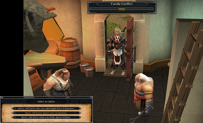Musíte hádku směřovat takovým způsobem, aby se Boric a Doric nakonec usmířili. Snažte se vybírat témata týkající se Boricova dětství a mládí.